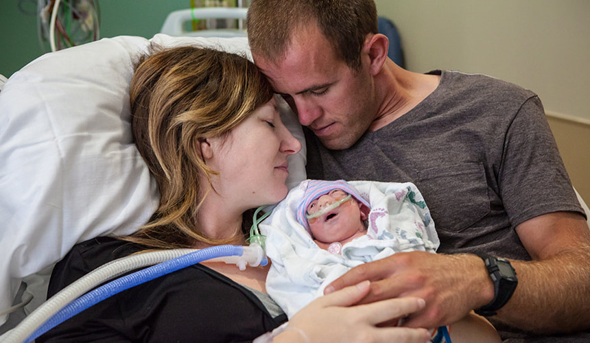 We arrived at the hospital on the day of delivery at 5:00 a.m. on June 26. Our family met together in the hospital chapel and held a prayer service. There were tears and heartache during this time because all the unknowns were still looming. We prayed for joy to overwhelm us, we prayed for healing, we prayed for peace, and we prayed for time with our girl.